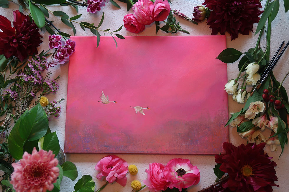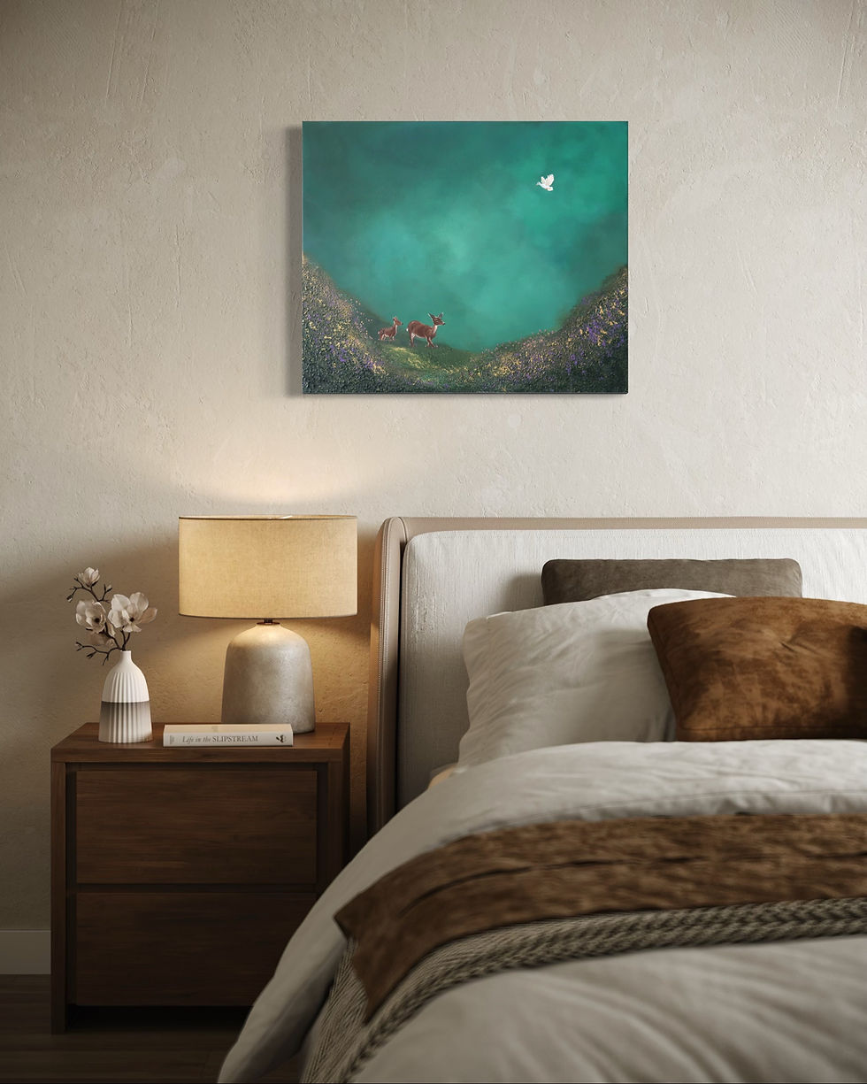 “The Radiance of Becoming” is a collection born from the language of transformation. Each painting reflects the journey of renewal—where fire, wing, and spirit tell of resilience after loss, exhaustion, and the weight of life’s trials. These works do not dwell in what was broken, but in what emerges: a rising phoenix forged in flame, butterflies unfolding into light, cranes and swans embodying grace, loons carrying endurance, deer watching as peace ascends.